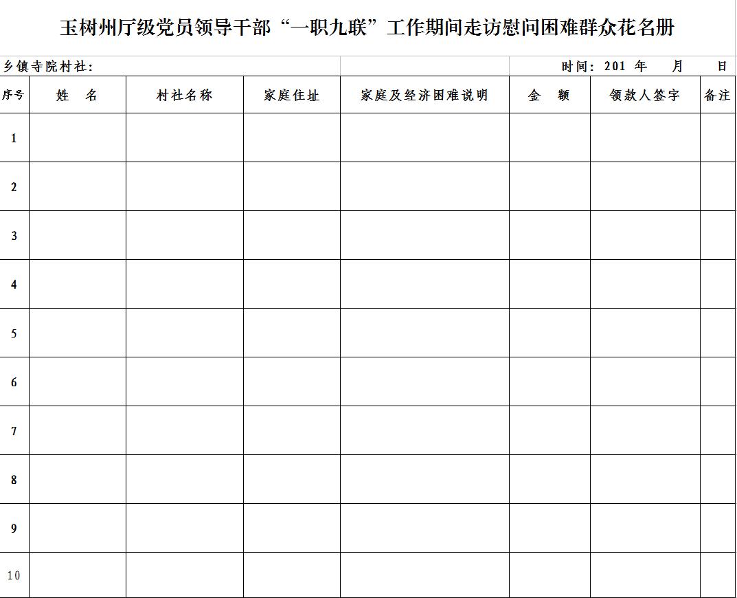 玉树州厅级党员领导干部“一职九联”工作期间走访慰问困难群众花名册